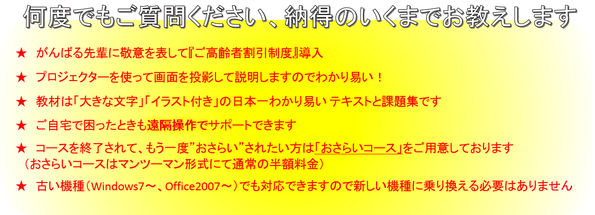 ・高齢者割引、パソコン入門割引でさらにお安く!